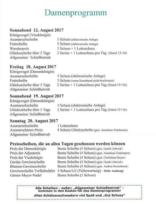 Schießprogramm Damen Schützenfest 2017
